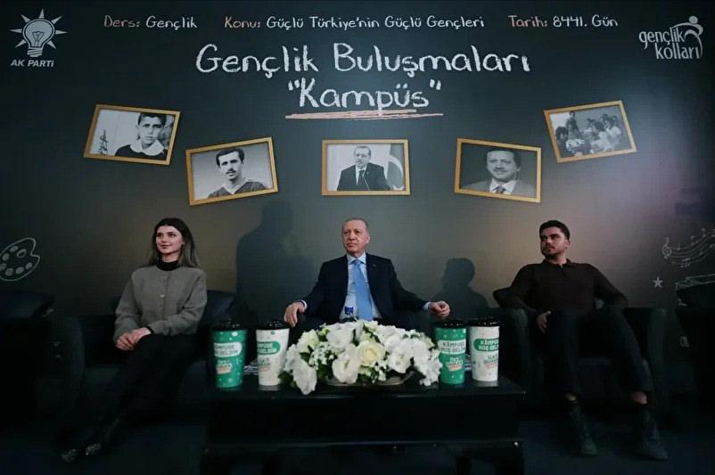 Erdoğan, siyasi hayatı boyunca gençlerle birlikte olmaya özel önem verdiğini vurgulayarak, “Hayalini kurduğumuz Türkiye’nin umudu olan siz genç kardeşlerimden sadece cesaret değil, aynı zamanda ilham da aldık. Mesuliyetimizin büyüklüğünü gördükçe başta gençlerimiz olmak üzere seksen altı milyonun esenliği için daha çok çalıştık, daha çok koşturduk” diye konuştu.